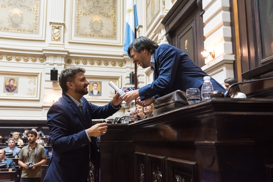 - 11.00 h: Llegada al Congreso Nacional, donde será recibido por la bicameral de recepción del presidente electo, pasará por el Salón de las provincias y firmara un libro protocolar.