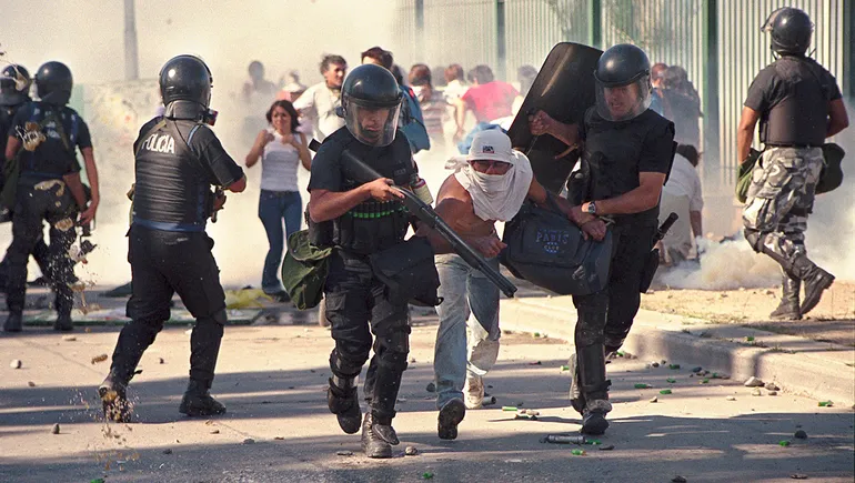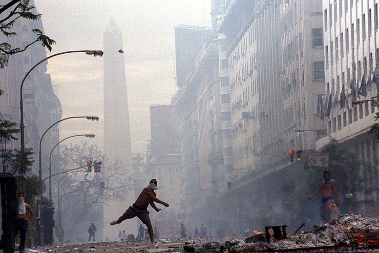El 20 de diciembre del 2001, el ex presidente Fernando de la Rúa presenta su renuncia bajo la presión popular, tras dos días de enfrentamientos en las calles que dejaron un saldo de más de 30 muertos.