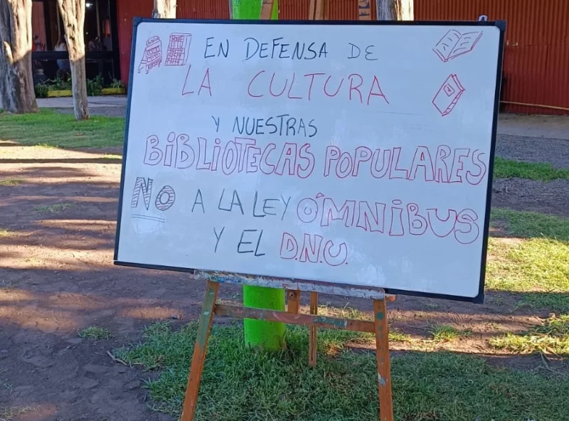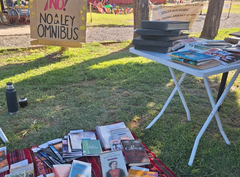 "Es una forma de fomentar la lectura en la comunidad, ofreciendo ejemplares repetidos de la biblioteca de manera gratuita. Esto también es una manifestación contra la ley ómnibus, que propone recortar el financiamiento a la Comisión Nacional de Bibliotecas Populares."