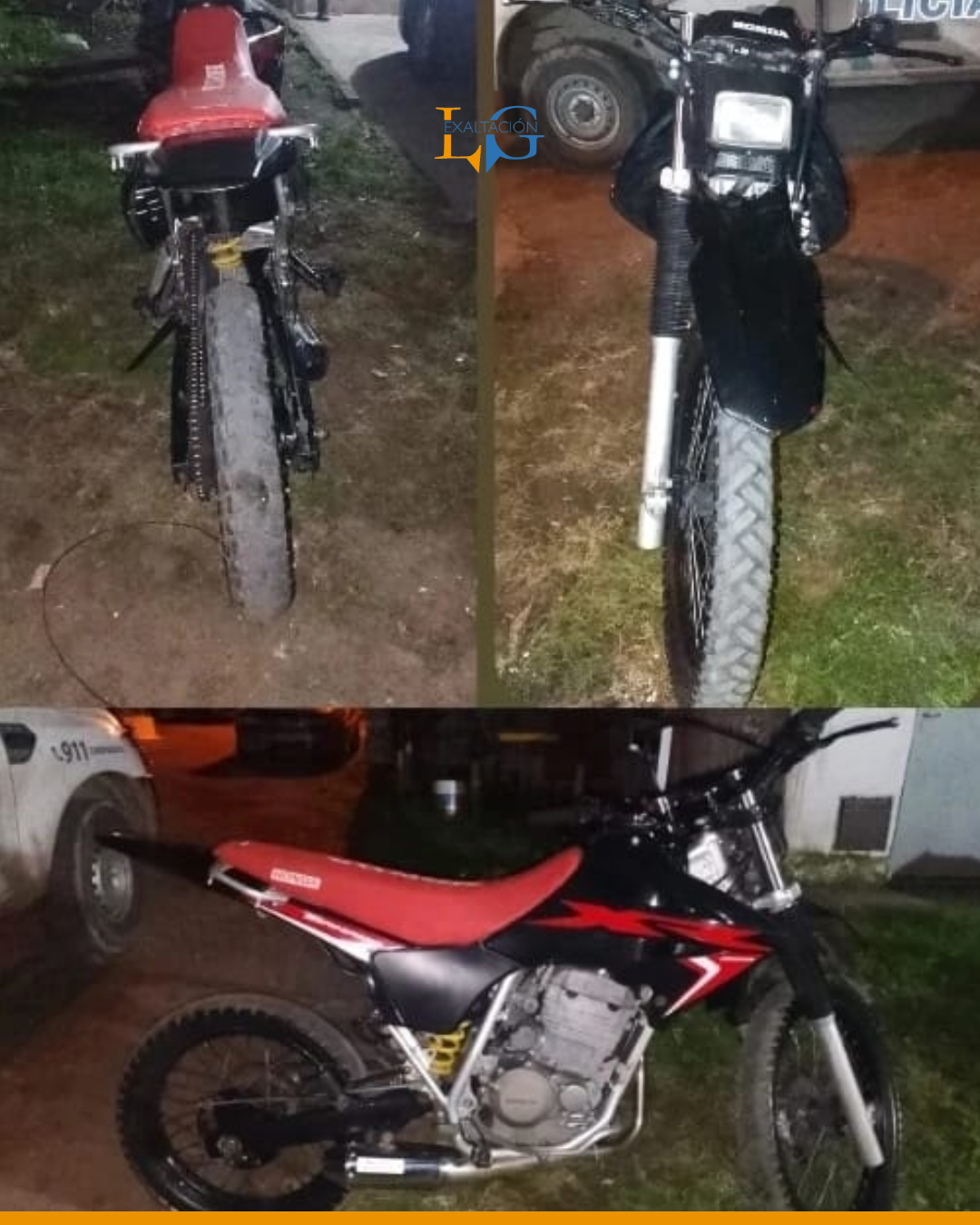Por otro lado, se secuestró una segunda motocicleta, modelo Tornado XR 250, que presentaba pedido de secuestro activo en el partido de Lomas de Zamora y cuya documentación estaba adulterada. Este caso fue puesto a disposición de la Fiscalía de Exaltación de la Cruz, a cargo del Dr. Juan Manuel Esperante.