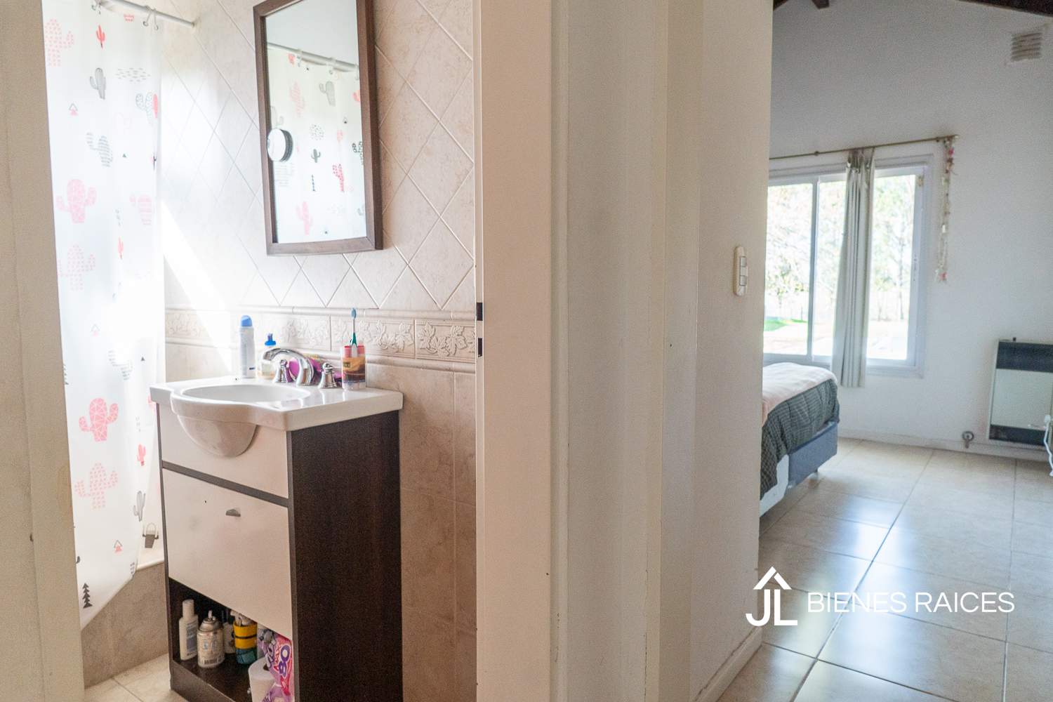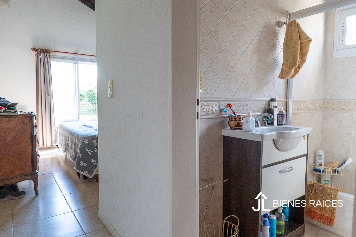 La casa cuenta con tres dormitorios. Uno de los dormitorios es una suite que incluye un baño completo, brindando privacidad y comodidad a sus residentes.