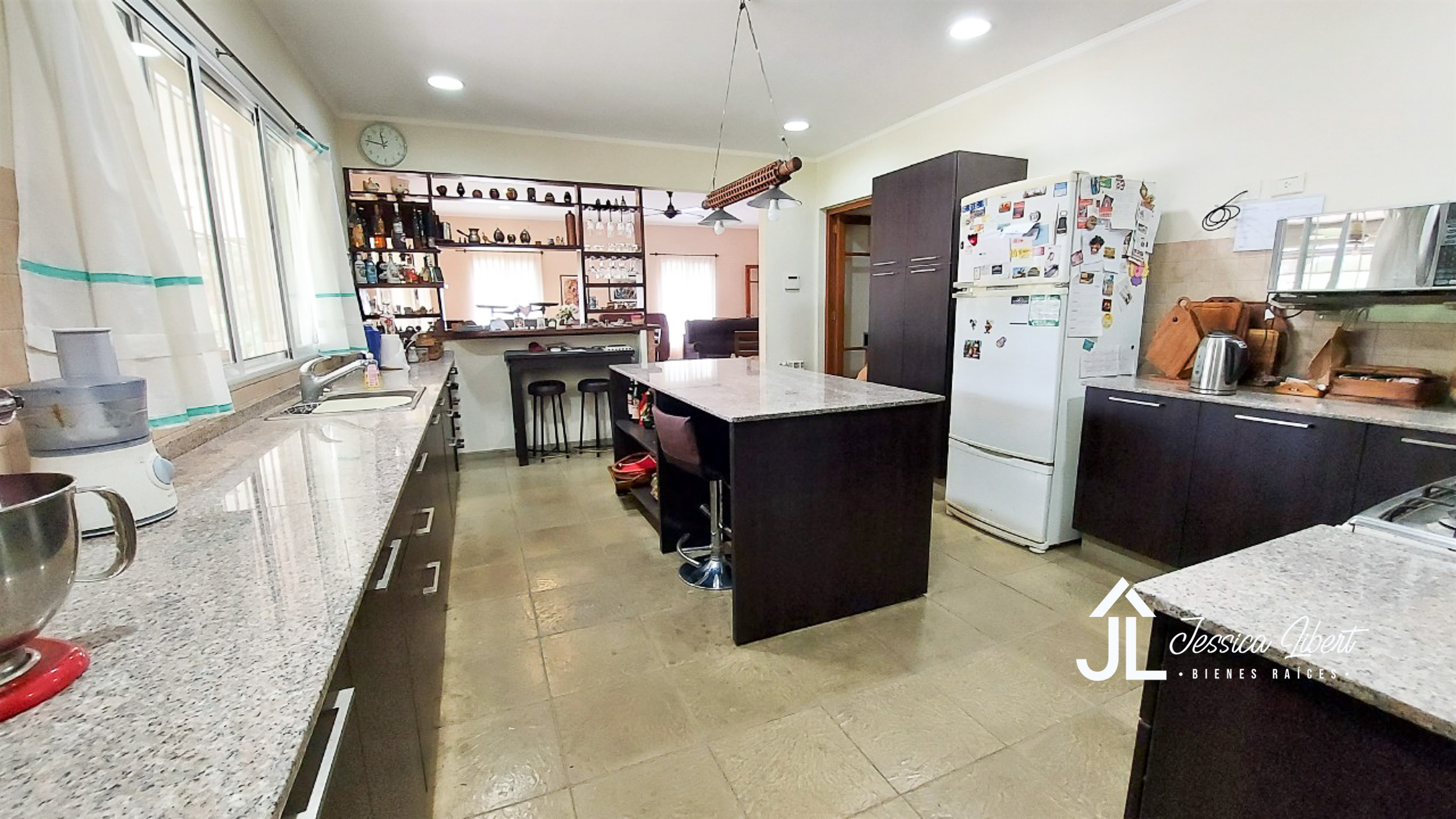 La cocina de 4,00x5,50 con isla central con muebles Johnsonn & Johnson, 2do. baño completo, lavadero, 3er. baño con ducha. Gran galería de 16,00x3,50 con parrilla. Garage de 7,50x4,30.
