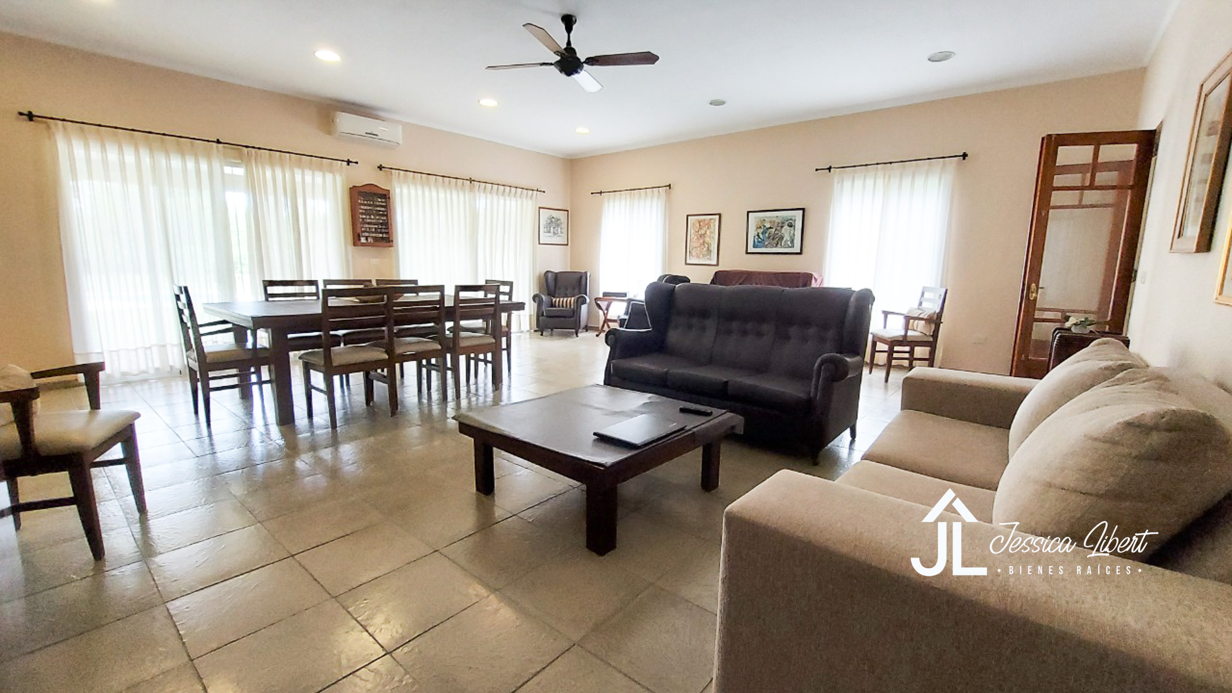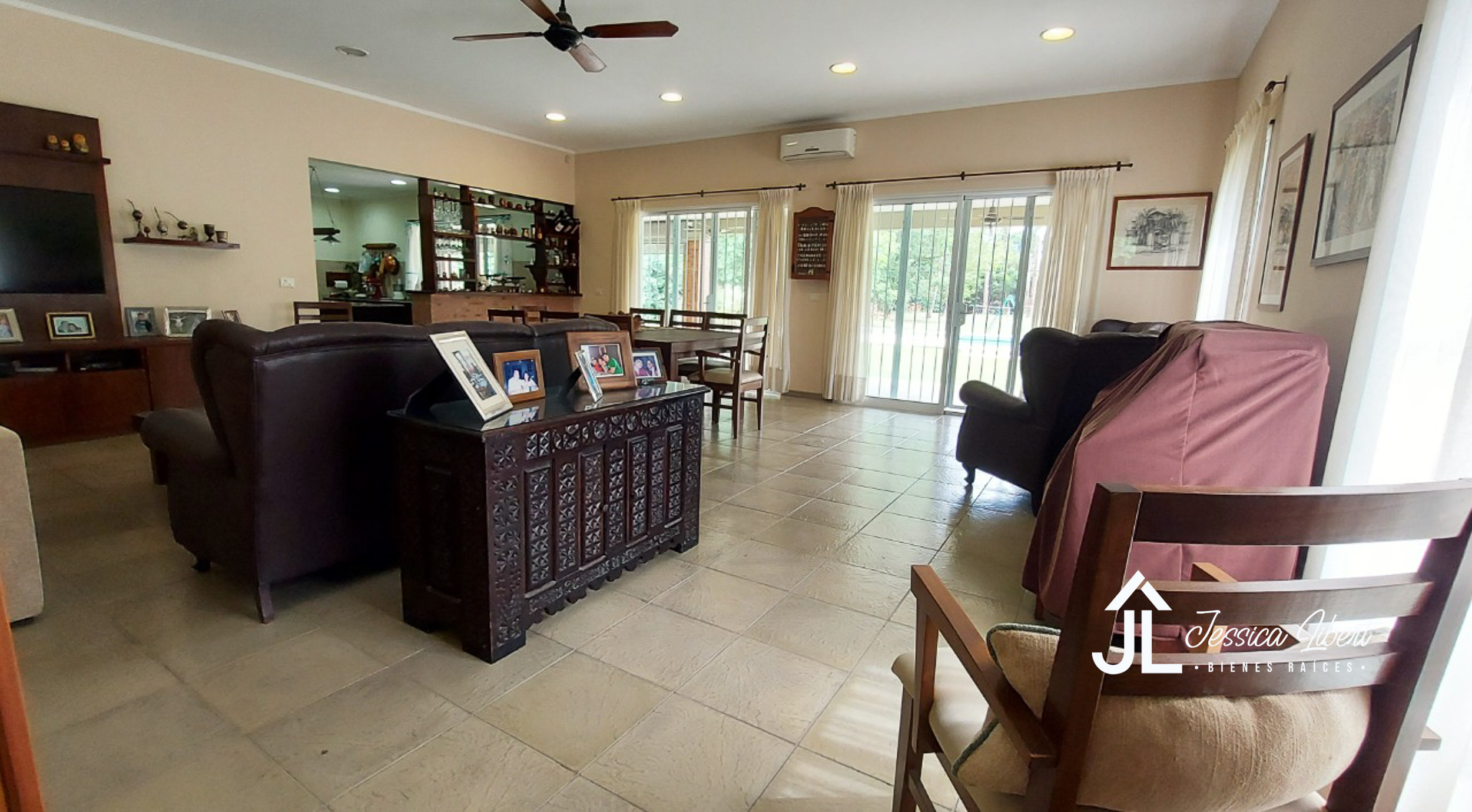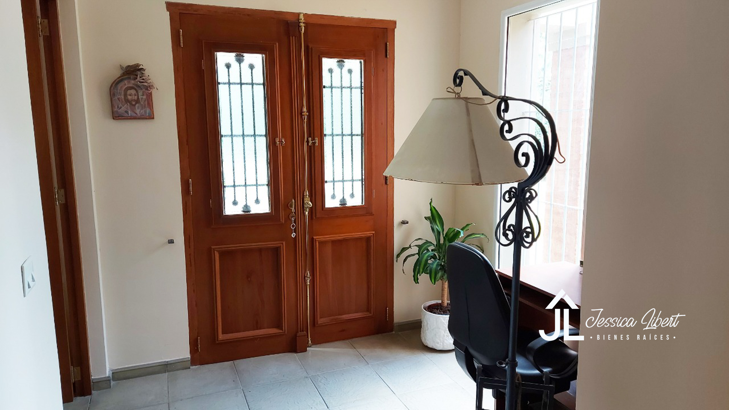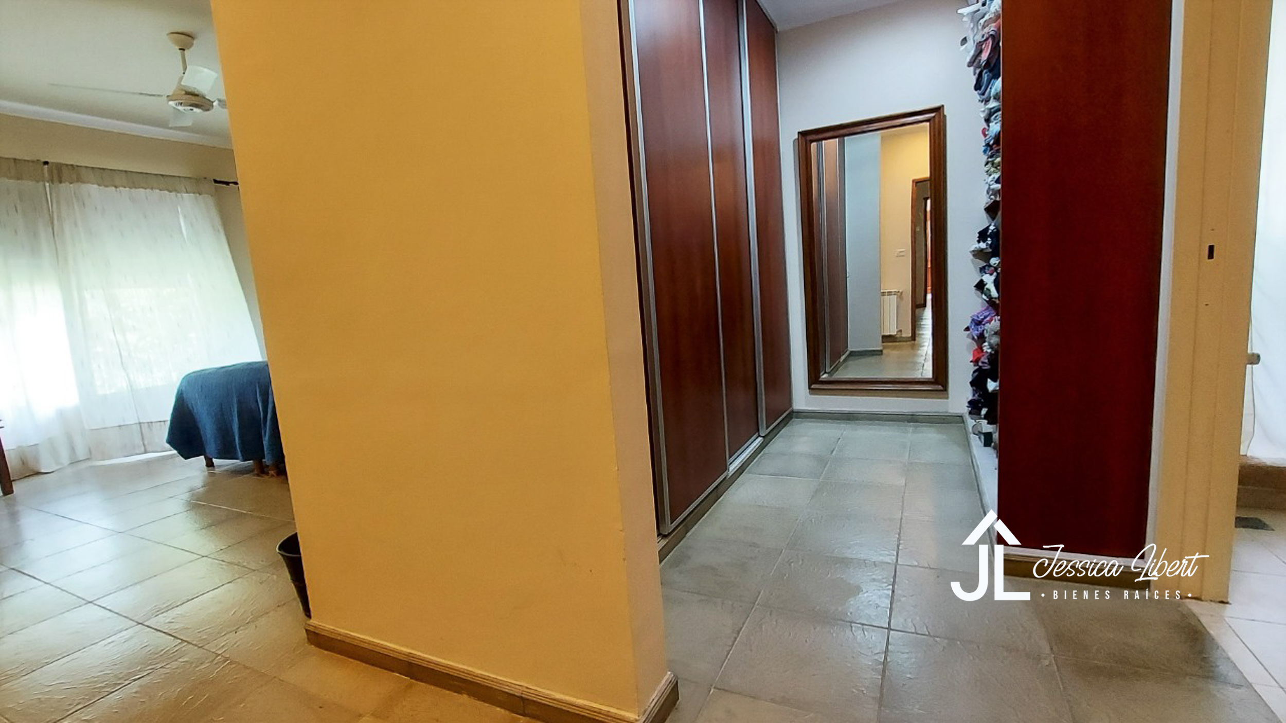 Tiene Porch de entrada, hall con doble circulación al living y al pasillo de distribución de los dormitorios de 1,50 m de ancho. Living comedor de 7,00x7,00, tres dormitorios. Dormitorio principal en suite con vestidor.