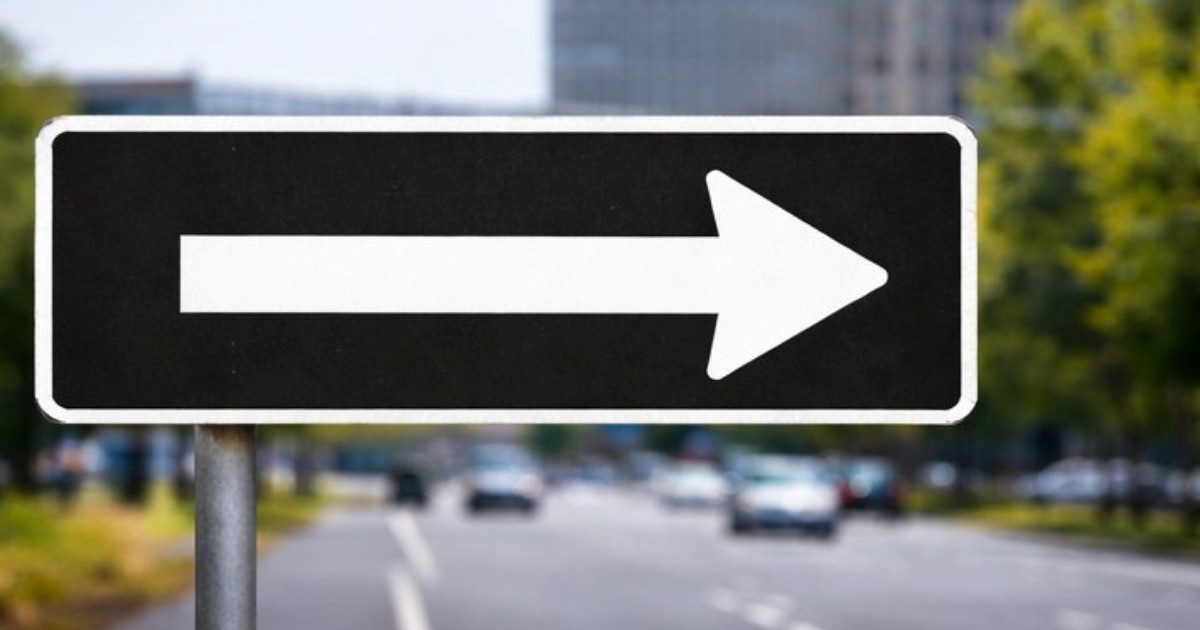 Qué significa la señal de tránsito que tiene una flecha blanca sobre un fondo negro