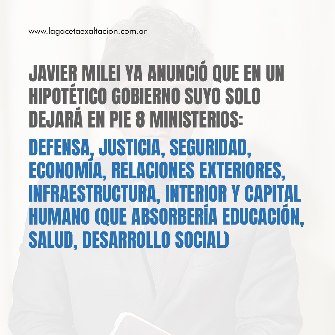 Como es de puro conocimiento, el Candidato de La Libertad Avanza, anunció que en el hipotético caso que el asuma, sólo dejará 8 Ministerio: Defensa, Justicia, Seguridad, Economía , Relaciones Exteriores, Infraestructura, Interior y Capital Humano.