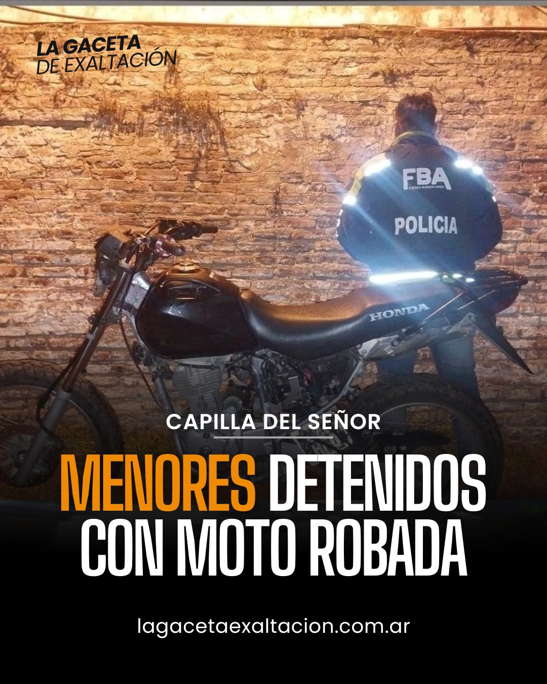Dos adolescentes fueron detenidos mientras se desplazaban en una motocicleta robada en un operativo conjunto de la policía de Capilla del Señor y el Comando Patrulla de Exaltación.